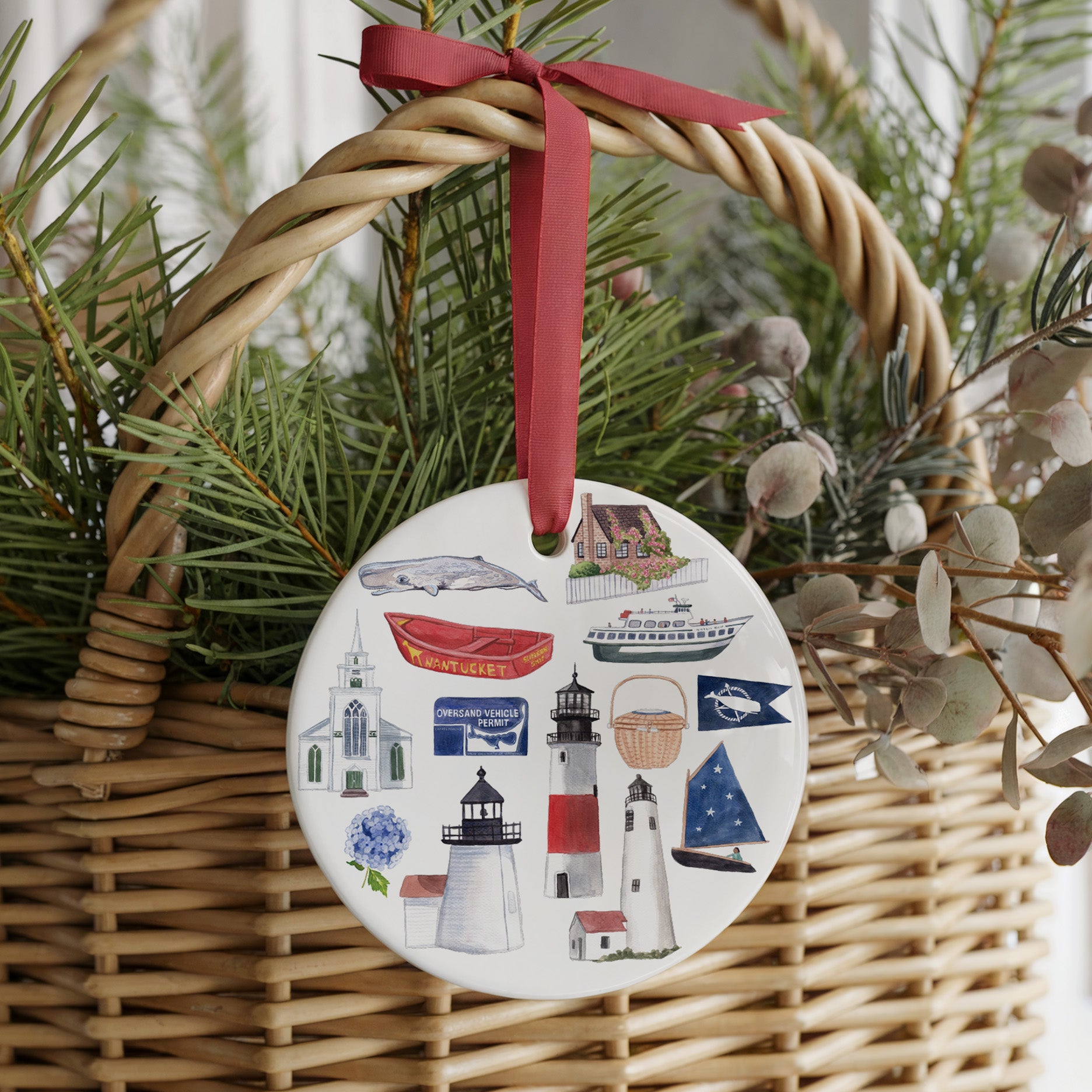 Sail into the season with our Nantucket Forever! ornament, a watercolor celebration of island charm and coastal elegance. Featuring beloved icons on one side and an iconic Nantucket sign on the other, this design captures the timeless allure of life “on-island.”